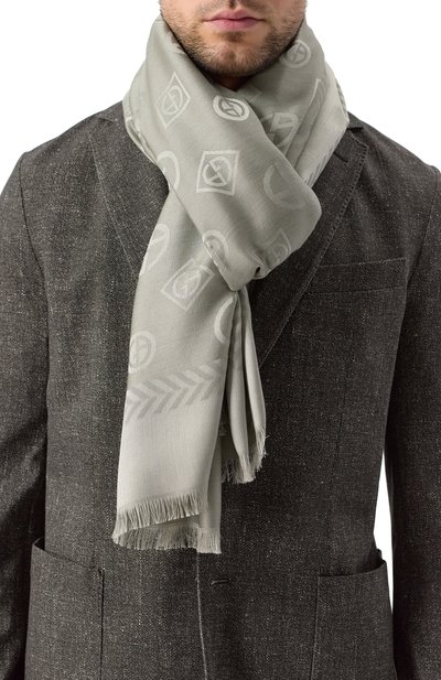 Для создания шарфа использовали кашемир, собранный с коз редкой породы Hircus. Для прочности в материал добавили гладкие нити шелка.