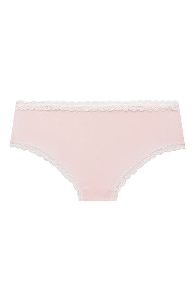 Светло-розовые трусы с тщательно обработанными плоскими швами не раздражают кожу, не сковывают движения и хорошо пропускают воздух. Комфорт на весь день обеспечивает мягкий эластичный трикотаж из шелковистого гипоаллергенного модала. Спереди слипы украшены нежным кружевом, атласным бантом и миниатюрным прозрачным кристаллом.
