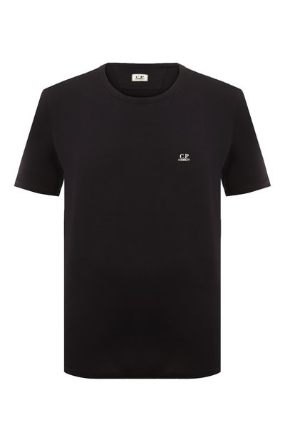 Темно-синяя футболка прямого кроя сшита из гладкого джерси сред ней плотности. Мягкий материал хорошо пропускает воздух, а изделия из него не пилингуются. Легкая эластичная модель с круглым вырезом и короткими рукавами украшена спереди небольшим белым логотипом марки.