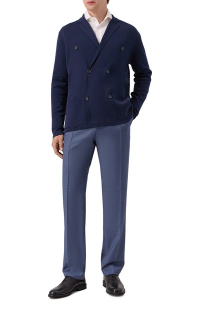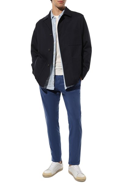 Синие брюки со стрелками одинаково хорошо рифмуются с вещами и нейтральной, и яркой палитры. Для пошива модели мастера марки использовали тонкий, но прочный дышащий лен, который обработали до особой мягкости. Пояс дополнили широкой эластичной вставкой, обеспечивающей более удобную посадку.