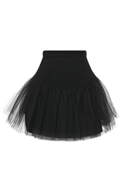 Черная мини-юбка с широкой кокеткой покрыта слоем полупрозрачного плиссированного тюля. Лоренцо Серафини выбрал для пошива модели гладкую шелковистую ткань. Наши стилисты предлагают создать образ total black с топом, кожаной курткой, туфлями на шпильке и сумкой.