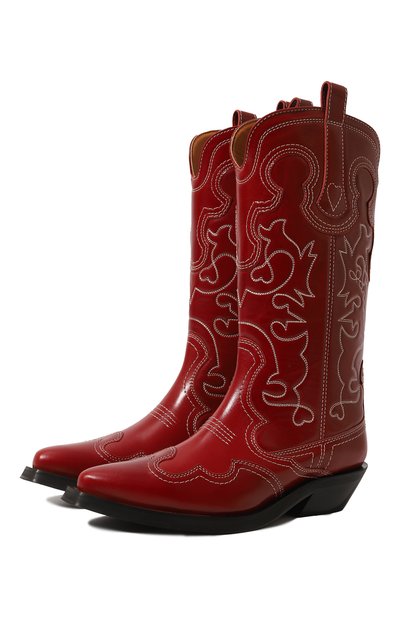 Дизайнеры марки усилили яркость красных казаков, украсив их контрастной белой вышивкой. Для изготовления модели с двумя петлями по бокам голенища использовали мягкую прочную кожу. Материал тщательно выделали, сохранив естественную пластичность, поэтому обувь удобно садится по ноге.