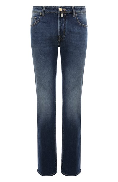 Лаконичный дизайн с небольшими потертостями делает эти джинсы прямого кроя универсальными. Ладить с разной одеждой помогает и темно-синий оттенок слегка эластичного хлопка. С тканью контрастируют лишь фирменный бежевый патч сзади на поясе и тонкий платок ему в тон, входящий в комплект.
