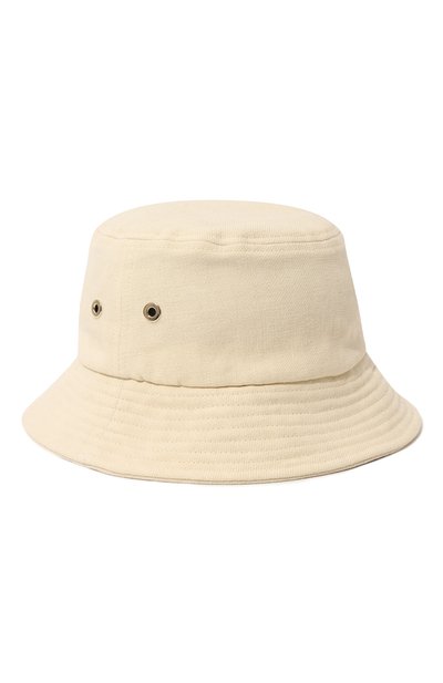 Кремовую панаму с покатыми стегаными полями мастера марки сшили из мягкого легкого льна. Материал особенно хорошо пропускает воздух, быстро впитывает и отводит влагу, не перегревая голову в жаркий день. Для дополнительного комфорта на высокой тулье по бокам предусмотрели две пары крупных серебристых люверсов.