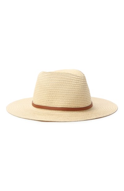 Тонкое плетение из пеньки и бумажного волокна сделало силуэт шляпы трилби непривычно мягким и создало романтичные складки на полях средней ширины. Сочетание разных оттенков бежевого сформировало меланжевый узор, а фирменная заклепка, покрытая 24-каратным золотом, украсила крупный бант на ленте грогрен, охватившей тулью.