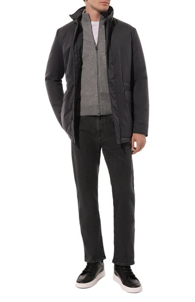 Слегка зауженные темно-серые джинсы с классической посадкой на талии могут стать базой повседневного образа любой сложности и палитры. Однотонную модель с небольшими потертостями сшили из плотного хлопка стрейч, который комфортно облегает тело, не ограничивая свободу движений. На принадлежность бренду указывает черный кожаный патч сзади на поясе.
