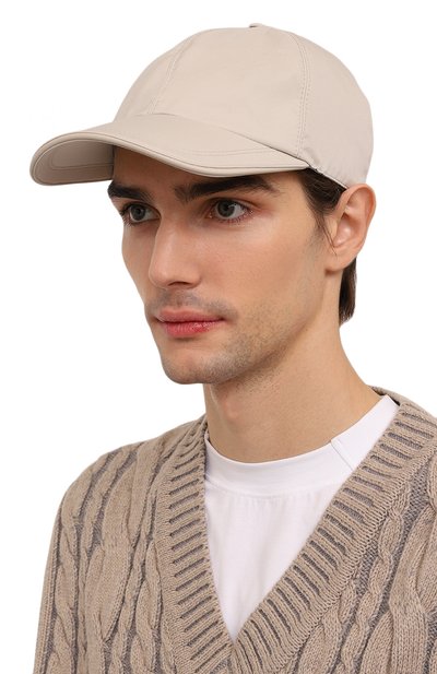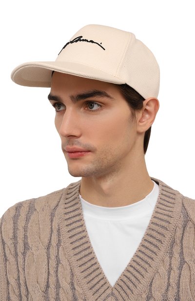 Для изготовления кремовой бейсболки с широким прямым козырьком команда марки использовала прочный текстиль. Аксессуар с подкладкой из тонкого хлопка хорошо пропускает воздух, делая прогулки комфортными. На принадлежность марке указывает металлич еская накладка сбоку на тулье.