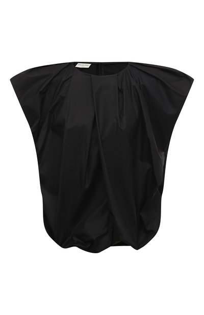 Для изготовления черного топа с акцентированной линией плеч Дрис ван Нотен выбрал мягкий шелковистый хлопок. Отсутствие декора дизайнер компенсировал складками, которым блеск материала придает дополнительный визуальный объем. Мы предлагаем носить такую модель с брюками в тон, завершив образ серебристыми мюлями и сумкой.