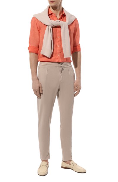 Брюки зауженного кроя сшиты из эластичного микса лиоцелла, полиамида и хлопка. Модель с четырьмя карманами и поясом-кул иской гармонично дополнит повседневный образ.