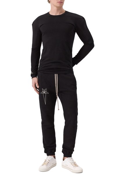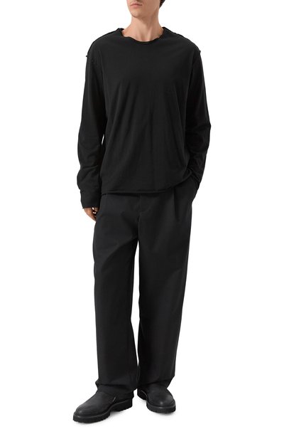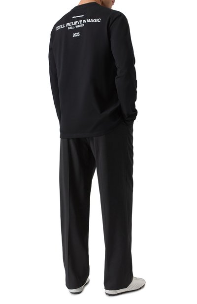 Для пошива базового черного лонгслива мастера марки, основанной Джил Сандер, использовали тонкое джерси из органического хлопка. Его вырастили без применения пестицидов, поэтому волокна такого материала мягче, про чнее и эластичнее обычного. Спереди модель украсили небольшим текстильным патчем с логотипом. В комплекте – еще два аналогичных изделия.