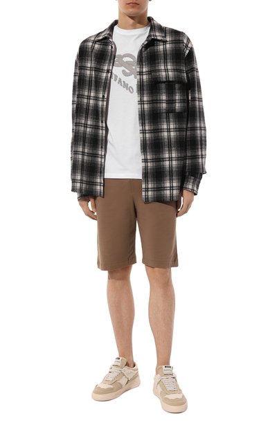 Белая футболка прямого кроя украшена спереди крупным синим логотипом бренда. Легкая модель с короткими рукавами и круглым вырезом сшита из гладкого хлопкового джерси с добавлением модала. Шелковистый эластичный материал отлично пропускает воздух, а одежда из него не пилингуется и не деформируется со временем.