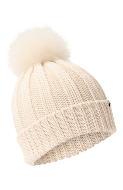 Для изготовления кремовой шапки бини с фактурным полосатым узором использовали тонкую мериносовую шерсть первого пострига. Нежные шелковистые волокна этого материала наполнены воздухом, поэтому модель отлично сохраняет тепло, но при этом не перегревает, обеспечивая комфорт и в холодную погоду, и во время оттепели. Изделие с широким отворотом декорировали крупным пушистым помпоном в тон.