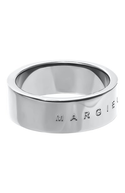 Для изготовления широкого кольца дизайнеры марки выбрали прочный серебристый сплав. Аксессуар отполировали до зеркального блеска, а роль деликатного акцента отдали тисненому мотиву MARGIELA.