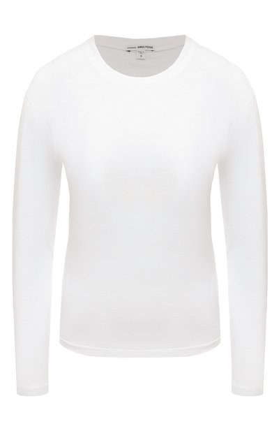 Прямой белоснежный лонгслив без декора будет уместно смотреться в повседневном образе с джинсами и сможет заменить блузу в офисе с нестрогим дресс-кодом. Для пошива модели, окрашенной в готовом виде, Джеймс Пирс выбрал тонкое хлопковое джерси, которое хорошо пропускает воздух. Волокна перед изготовлением пряжи обработали для особенной мягкости, сделав материал очень приятным на ощупь.