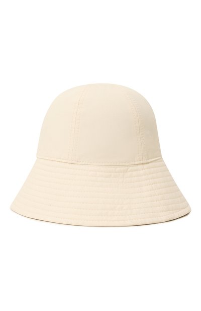 Светло-бежевую панаму мастера марки сшили из тонкого хлопка. Такая ткань хорошо пропускает воздух и защищает от палящих лучей солнца, поэтому в аксессуаре будет комфортно в летние дни. Широкие поля уплотнили стегаными параллельными строчками.