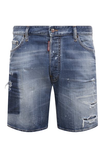 Для пошива синих джинсовых шорт братья Кейтены выбрали мягкий прочный хлопок с добавлением эластана. Модель в готовом виде обработали вручную, чтобы создать искусственные потертости и заломы, эффект от которых усиливает рисунок, напоминающий брызги краски. Изделие украсили сзади яркой нашивкой с принтом, стилизованным под рекламный пла кат с логотипом марки.