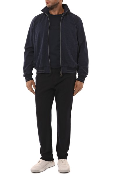 Лаконичность темно-синей футболки немного нарушила миниатюрная вышивка в виде одного из символов бренда — грифона. Узор выполнили тонкими нитями с легким шелковистым сиянием. Оно перекликается с деликатным блеском мерсеризованного джерси на основе премиального длинноволокнистого хлопка. Такой трикотаж гораздо прочнее и эластичнее обычного, не теряет форму и не садитс я после стирки.
