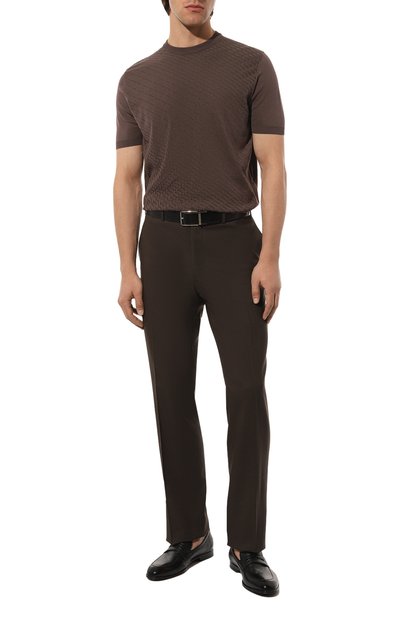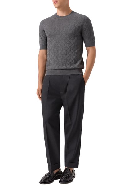 Для изготовления джемпера спокойного зеленого оттенка мастера марки, основанной Стефано Риччи, использовали тонкий нежный хлопок ценных сортов с добавлением прочного гладкого шелка. Изделие из такого материала с деликатным блеском комфортно садится по фигуре, отлично пропускает воздух и не ограничивает свободу движений. Короткие рукава адаптируют модель для теплой погоды.