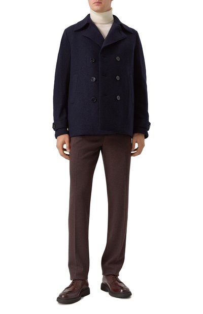 Бордовые брюки расширят палитру гардероба насыщенными оттенками, а классический крой со стрелками и материал помогут им остаться в рамках строго дресс-кода. Для пошива модели мастера марки использовали тонкую мягкую шерсть, которая поддерживает оптимальную температуру и почти не мнется. Волокна шелка в составе ткани предупреждают пилингование и делают ее прочнее.