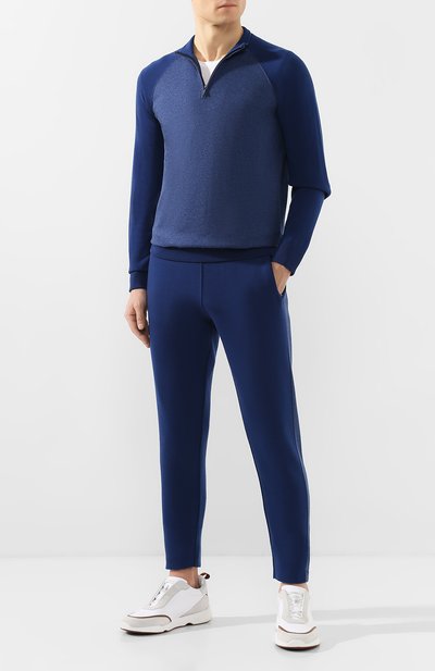 Голубые брюки со стрелками умело рифмуются с вещами и из офисного, и из повседневного гардероба. Для пошива модели мастера марки использовали гладкую шерстяную ткань с добавлением прочных волокон шелка, придающих полотну деликатный блеск. Изделие из такого материала почти не мнется, сохраняя безупречный вид в течение дня.