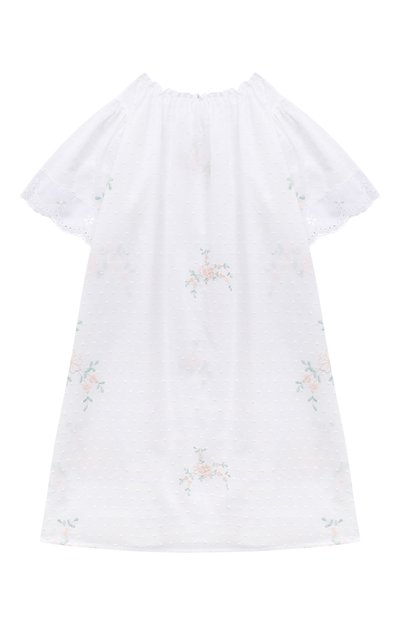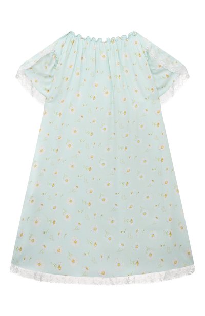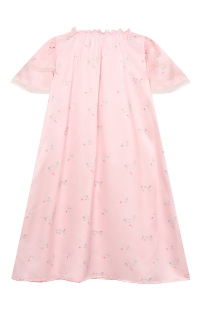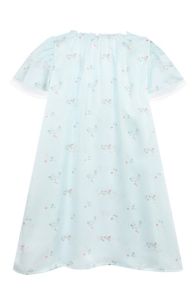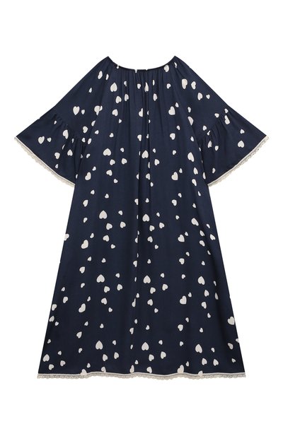 Сорочку Calista сшили из вискозы с гороховым паттерном. Рукава-крылышки модели и горловину с атласным бантом украсили узким кружевным кантом.