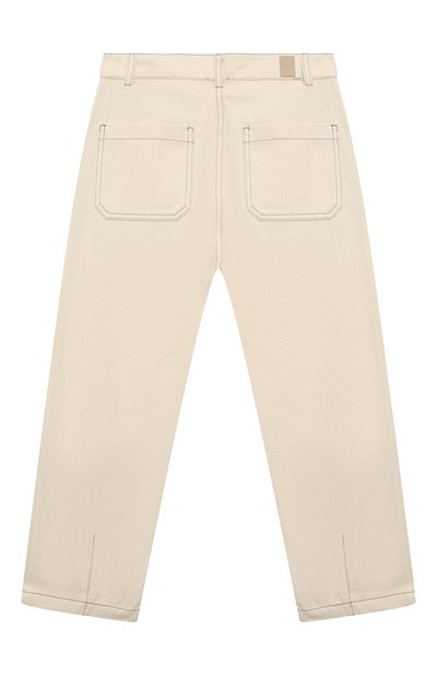 Светлые джинсы из плотного прочного хлопка выглядят так, словно их обвели по контуру тонким карандашом. Такой эффект создает контрастная серая строчка, которой продублировали швы. Для украшения модели также использовали небольшой коричневый патч с тисненым логотипом. О принадлежности бренду деликатно напоминает и узор на крупной металлической пуговице.