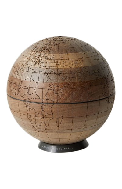 Небольшой декоративный глобус из орехового дерева выглядит так, словно его позаимствовали в старинной европейской библиотеке. На отшлифованной гладкой поверхности лазером вырезали контуры государств. Аксессуар установили на лаконичную брендированную подставку из искусственного камня Krion.