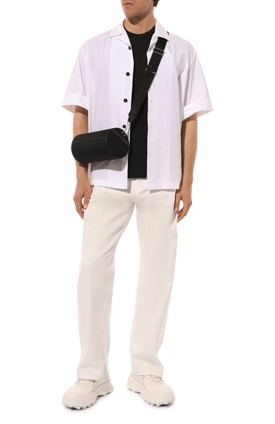 Черная футболка станет любимой частью базового гардероба: для ее пошива выбрали тонкое джерси из нежного прочного шелка. Чтобы приятная на ощупь модель лучше пропускала воздух, позволяя коже дышать, в состав трикотажа добавили отборный хлопок. Лаконичное изделие органично будет смотреться и джинсами, и с костюмными брюками.