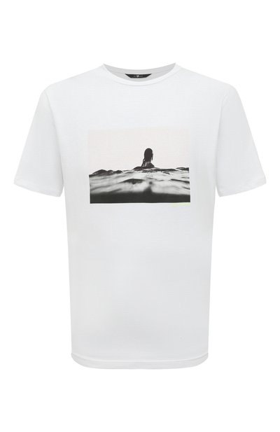 Белая футболка с короткими рукавами выглядит графичнее за счет монохромного фотопринта спереди. Для пошива модели использовали мягкий трикотаж, связанный из премиального хлопка. У него тонкие и длинные волокна, которые делают изделие легче, приятнее на ощупь и прочнее аналогов.