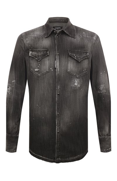 Сильные потертости и выбеленный эффект делают черную джинсовую рубашку похожей на любимую вещь, с которой не расставались несколько сезонов. Для пошива модели с отложным воротником братья Кейтены выбрали тонкий деним. Изделие застегивается кнопками с отполированными кабошонами в тон.