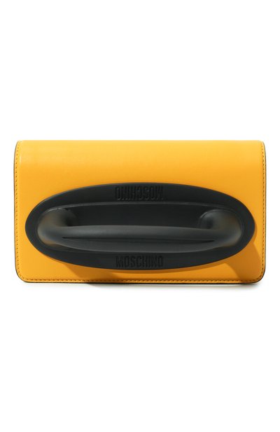Миниатюрная сумка способна стать акцентом образа и дело не столько в насыщенном желтом оттенке. Перетягивает на себя внимание черная объемная ручка, напоминающая по форме надувную лодку. Эта деталь легко сыграет и функциональную роль, если отстегнуть плечевой ремень-цепочку. Внутрь поместятся помада, зеркало и ключи.
