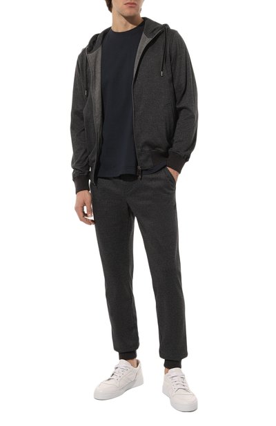 В темно-синих джоггерах с шевронным узором будет комфортно как на прогулке в городе, так и во время отдыха в кемпинге. Модель связали из мягкой хлопковой пряжи, поэтому она хорошо пропускает воздух и тянется, не ограничивая движения. В состав материала добавили прочный шелк, который предупреждает пилингование и отвечает за безупречный вид изделия.