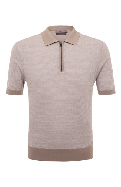 Бежевое поло с волнистым узором, дополненное однотонными воротником, манжетами, поясом и планкой, впишется в сдержанный casual-образ с вещами близкой гаммы: белой футболкой и кремовыми брюками и кроссовками. Для пошива модели мастера марки использовали мягкий эластичный трикотаж из дышащего хлопка, создающего комфорт ный для тела микроклимат.