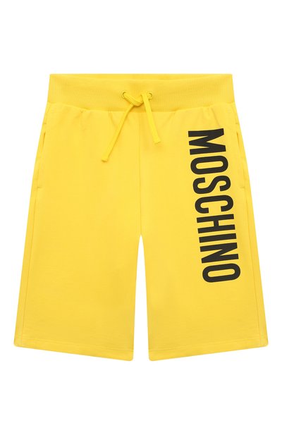 Мастера марки сшили желтые шорты из мягкого плотного трикотажа. Для его изготовления использовали ультрадлинные хлопковые волокна, поэтому материал хорошо пропускает воздух. Для удобства предусмотрели регулируемый эластичный пояс-кулиску. Левую брючину украсили крупным черным логотипом бренда.