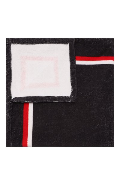 Для пошива темно-синего полотенца с красно-белым полосатым кантом мастера марки использовали мягкий махровы й хлопок. Материал с характерным коротким ворсом быстро впитывает и отводит влагу. Изделие украсили крупным изображением знакового для бренда медведя, которого одели в тельняшку.
