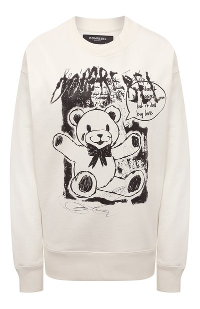 В плюшевом медведе, будто от руки нарисованном на этом свитшоте, нет ни следа детской наивности. Черный цвет и утрированно неровные линии делают персонажа драматичным, а накал повышает слоган Money doesn't buy happiness but it does buy love. С рисунком перекликается размы тый логотип бренда сзади, а кремовый хлопковый футер оттеняет принты.