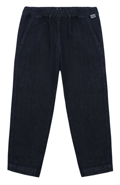 Создавая темно-синие джинсы, команда марки уделила максимум внимания комфорту. Крой модели сделали свободным, чтобы она не ограничивала движения, а привычный пояс с пуговицей заменили эластичным, делающим посадку на талии удобнее. Для пошива изделия использовали мягкий прочный хлопок с добавлением стрейче вых волокон.