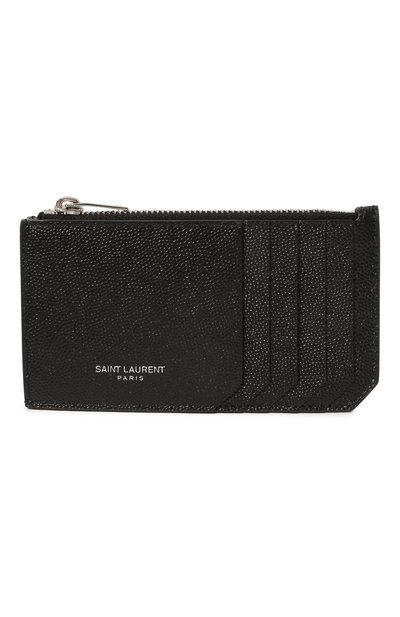 Функциональность черного картхолдера расширили, предусмотрев у него не только пять слотов для кредитных карт, но и карман на молнии, внутри которого удобно хранить монеты и чеки. Футляр выполнили из плотной мелкозернистой кожи и украсили спереди тисненым логотипом бренда.