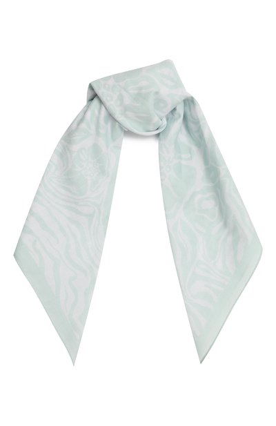 Квадратный платок нежного мятного оттенка настолько мягкий и легкий, что почти не ощущается на теле. Мастера марки, основанной Жанной Ланван, ис пользовали для пошива аксессуара почти немнущийся тонкий хлопок с шелковистой текстурой и деликатным цветочным мотивом.