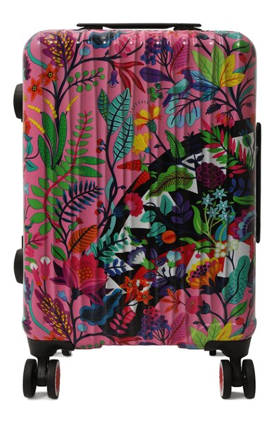 Разноцветный чемодан с ярким растительным мотивом выполнили из прочного полимера. Внутри аксессуара — органайзер с карманами на молниях и регулируемые ремни, которыми удобно фиксировать вещи. Модель с замком TSA дополнили телескопической ручкой и бесшумными колесами, которые мягко вращаются.