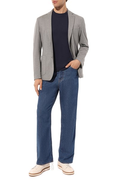Лаконичная футболка станет универсальной вещью в повседневном гардеробе и сможет подружиться как с джинсами, так и с более строгими брюками. Для пошива изделия с круглой горловиной использовали хлопковое джерси.