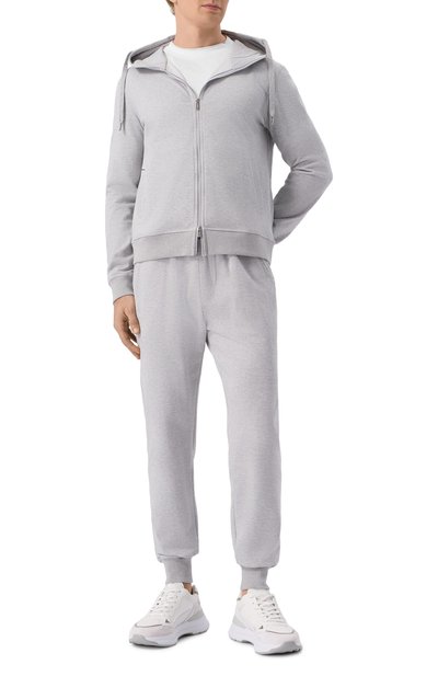 Светло-серый футер из отборного длинноволокнистого хлопка сделал толстовку из линии Travelwear очень мягкой и легкой. У нежного трикотажа изнанка с «вафельной» фактурой, поэтому он хорошо сохраняет тепло, но не препятствует циркуляции воздуха. Мастера итальянской марки, основанной Брунелло Кучинелли, усилили материал волокнами полиамида, чтобы модель с крупными боковыми карманами долго сохраняла первоначальный вид.