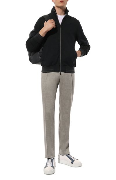 Высокий ворот, пояс и манжеты из рифленого материала придают темно-синему кардигану сходство с толстовкой. Впечатление усиливает плотный трикотаж из премиального хлопка. Он хорошо пропускает воздух, а за счет высокого содержания полиэстера в составе — держит заданную кроем форму. Такое изделие со встречной молнией сможет заменить легкую куртку прохладным вечером.