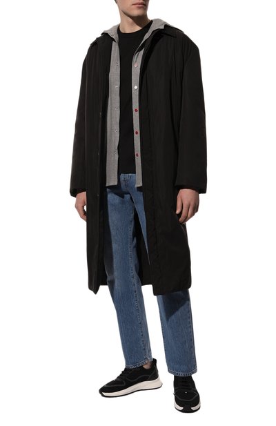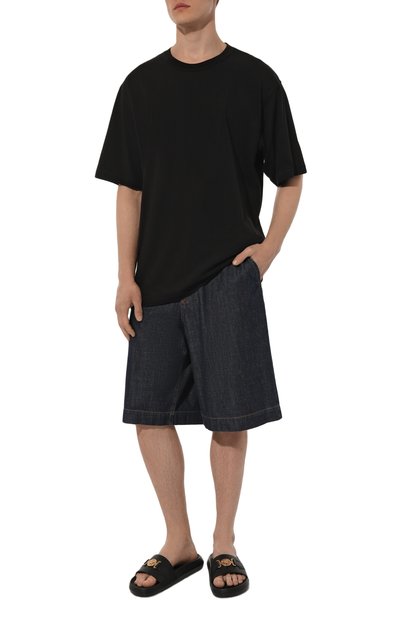 Для пошива лаконичной черной футболки с короткими рукавами мастера марки использовали гладкое тонкое джерси из длинноволокнистого хлопка премиальных сортов. Приятный на ощупь материал с деликатным шелковистым блеском превосходит аналоги по прочности, почти не мнется и не сковывает движения.