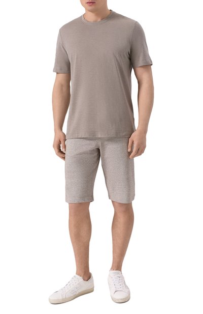 В бежевых шортах с отворотами будет комфортно в течение дня. Приятный на ощупь трикотаж из премиального хлопка, усиленного эластаном, хорошо пропускает воздух, а прямой крой в сочетании со стрейчевыми свойствами материала гарантирует свободу движений. Модель дополнили двухцветным широким поясом-кулиской, регулирующи м посадку на талии.