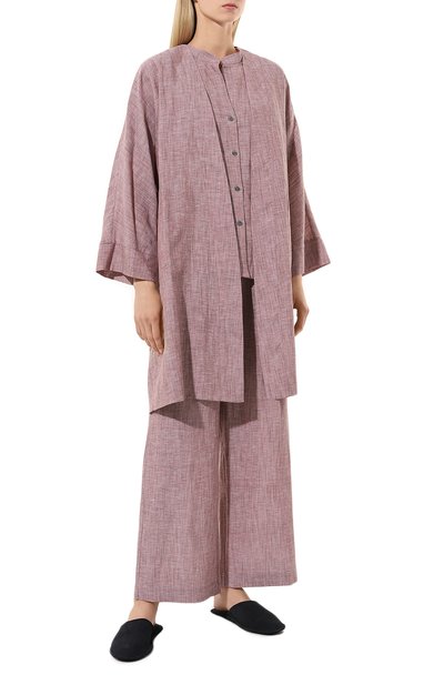 Махровый халат с глубоким капюшоном поможет согреться после водных процедур. Для изготовления модели с разноцветными вертикальными полосами мастера марки использовали мягкую фактурную ткань, в которой волокна хлопка соединили с нитями люрекса. Они придали изделию прочность и блеск. В комплекте — пояс-лента, регулирующи й глубину запаха.