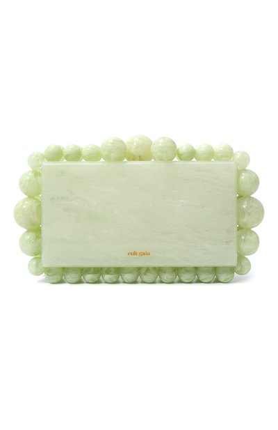 Кажется, что миниатюрный клатч Eos выполнили из бледно-зеленого нефрита, но на самом деле это прочный акрил, который не боится царапин. Минодьер декорир овали по краям крупными круглыми бусинами, создав эффект ожерелья. В аксессуар с замком-защелкой поместятся смартфон, картхолдер и ключи.