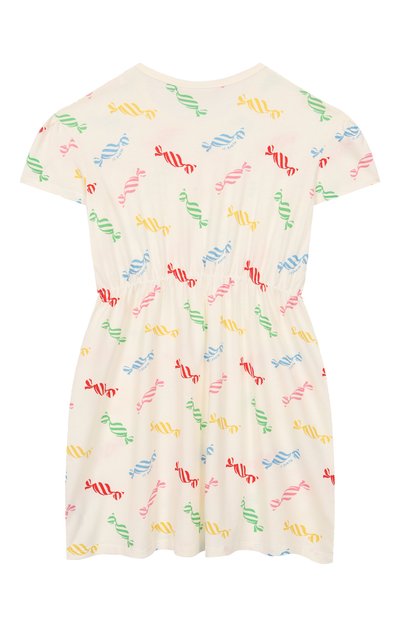 Белое платье-футболка выполнено из тонкого хлопкового трикотажа с красочным принтом. Приятный на ощупь материал отлично пропускает воздух, а комфортный прямой крой не сковывает движения. Модель с короткими рукавами и круглым вырезом украшена вышитым логотипом марки и длинной бахромой.