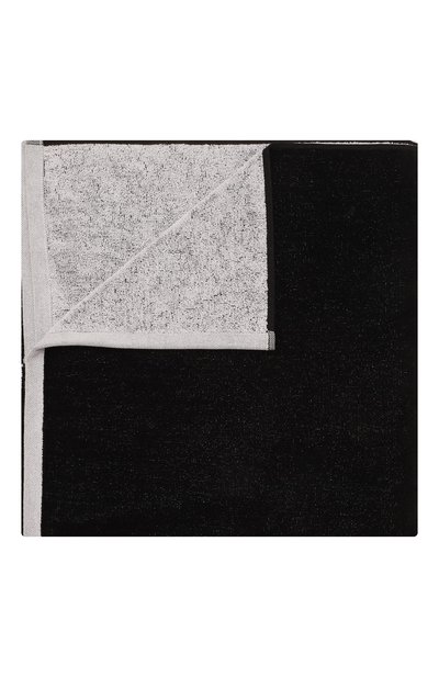 Для изготовления пляжного махрового полотенца использовали монохромную палитру: одну сторону сделали черной, другую — белой. Аксессуар с жаккардовым логотипом выполнили из тонкого хлопка, который мгновенно впитывает влагу, оставляя кожу сухой, быстро сохнет и пропускает воздух. Края укрепили текстильной лентой.