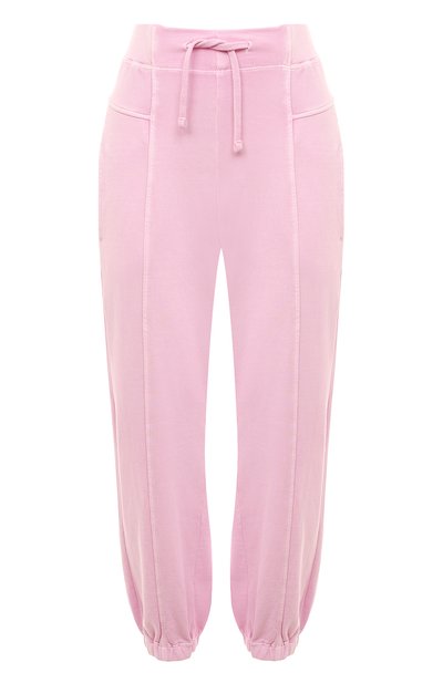 Укороченные джоггеры, окрашенные вручную в светлый цикламеновый оттенок, добавят динамики повседневному образу или станут основой комплекта в спортивном стиле. Для пошива лаконичных однотонных брюк использовали мягкий трикотаж из органического хлопка, производство которого позволяет сберечь водные ресурсы и уменьшить углеродный след. Рельефные швы добавляют модели графичности, а эластичный пояс-кулиска помогает отрегулировать посадку на талии.